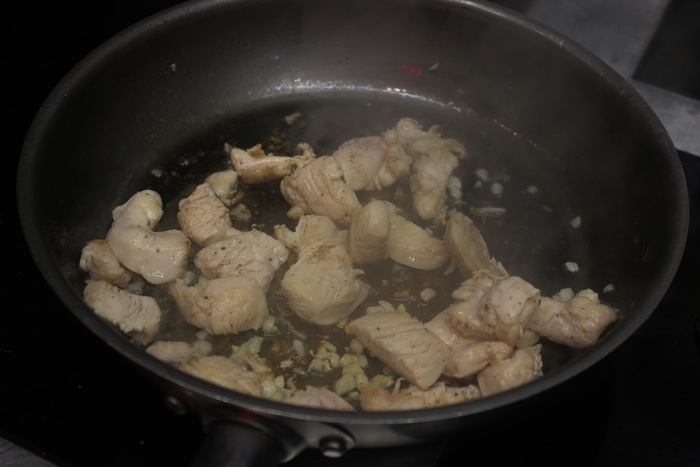 5) Обжариваем филе с добавлением перца, чеснока и соевого соуса. Не забываем подсаливать!