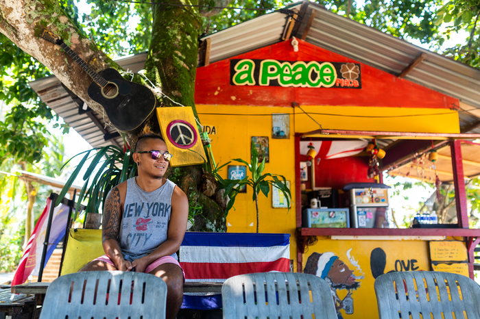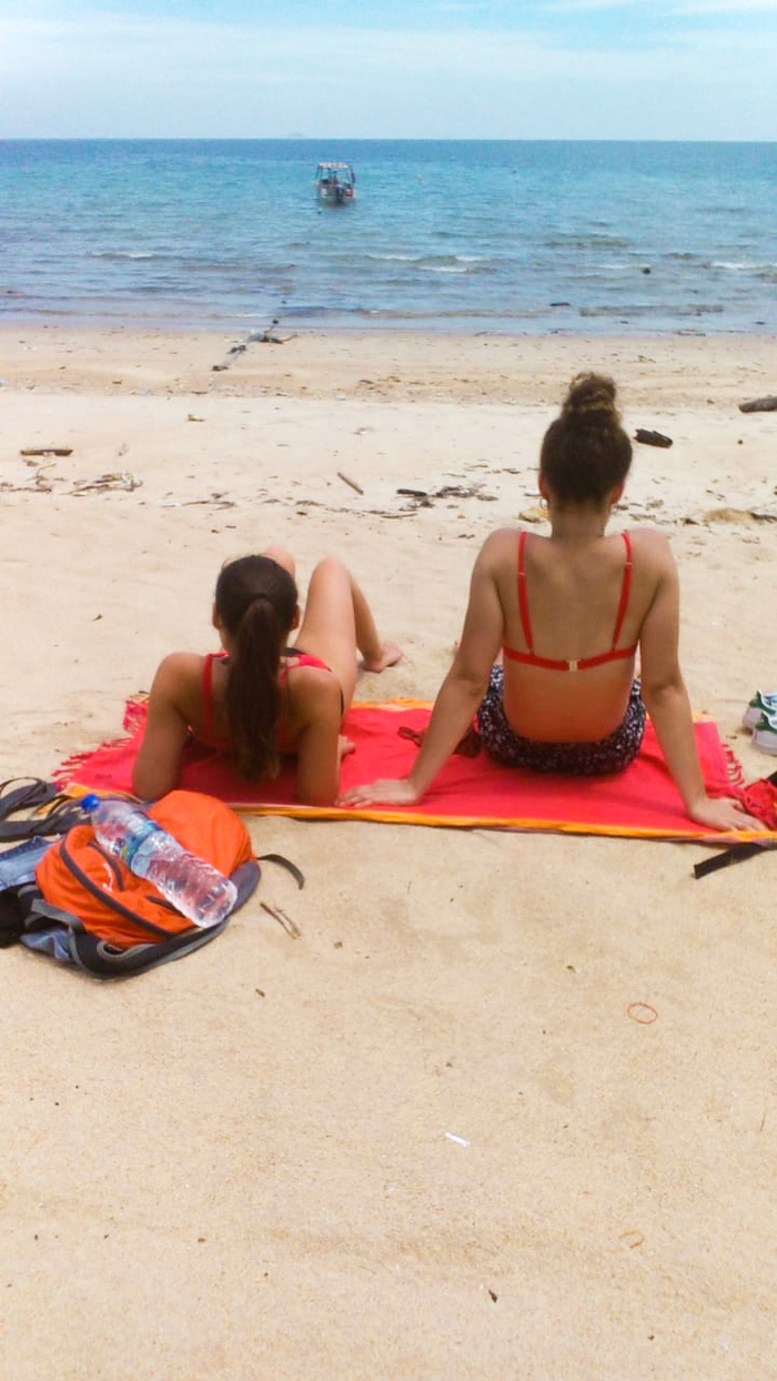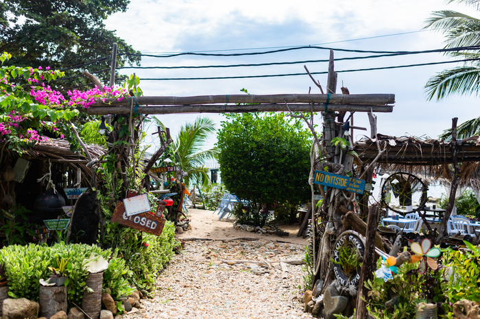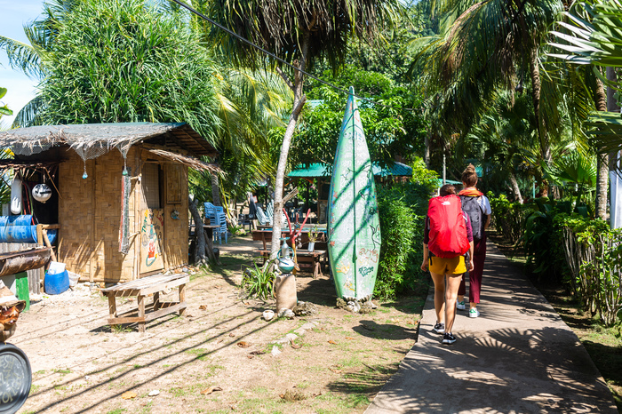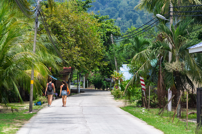 Сойдя с парома, познакомился с двумя девочками, они из Канады, тоже путешествуют с рюкзаком. Разговорились, они спросили, где я забронировал хостел. Ответил, что еще не делал этого) Проводили до своего гёстхауса, там стоимость комнаты 1500. Сам он находится в отдалении от пристани, и океана, на горе, в джунглях. Я отказался, сказав, что найду подешевле)