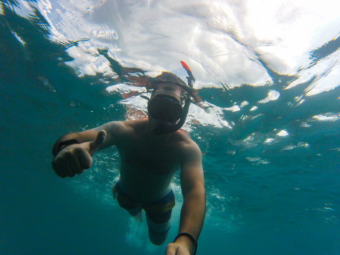 На следующий день я встретил русского парня. Он работает моделью, в Малайзии (и на Тиомане в частности) отдыхает с подружкой, заодно и визаран делает) Рассказал, что очень стоит поснорклить (ныряние с маской и трубкой), показал место... Это огонь) За 100 рублей (аренда маски и трубки) я получил столько удовольствия) Фото на GoPro, аквабокса у меня нет(