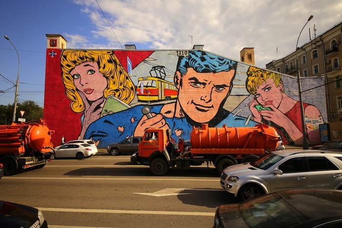 К примеру наткнулся еще на такого интересного райтера, Степана. Он рисует, в торговых центрах, на улицах где гуляет множества людей, и на бойлерках возле жилых домов. Представлю, пару его работ.