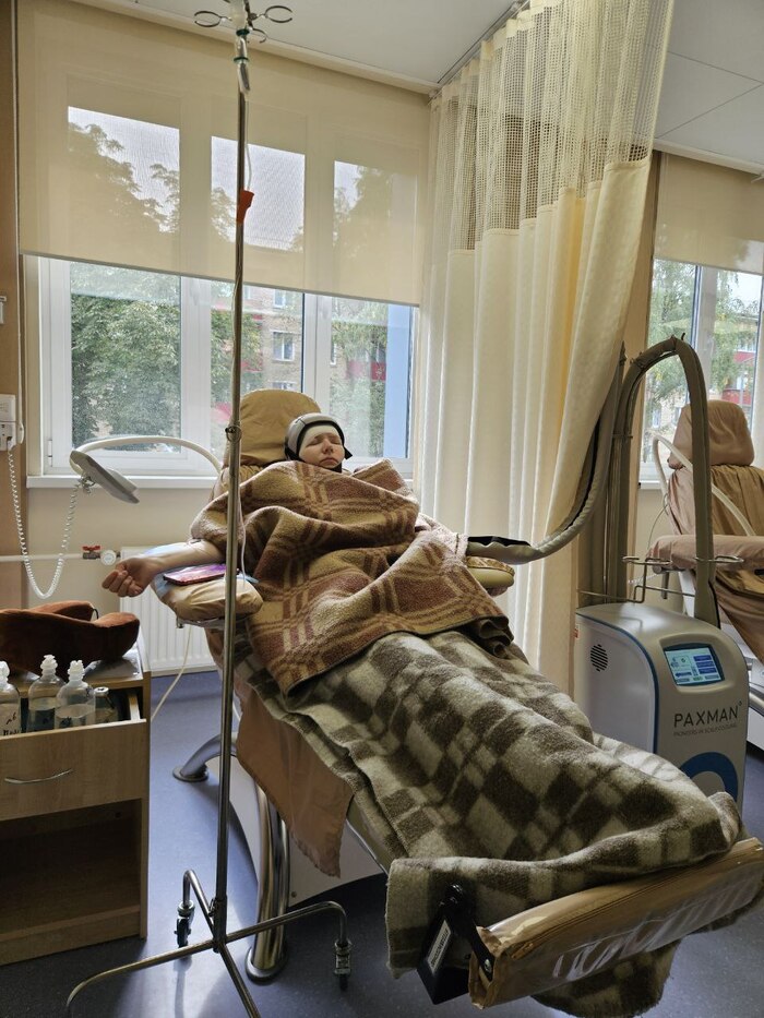 Первая соседка меня очень напугала, потому что она говорила невнятно, опухоль у нее доброкачественная, но её удалили не полностью, поэтому и ей приходится проходить химию. Как я потом подумала, что проблемы с речью были у нее из-за химии в капельнице. Потому что на второй день она говорила со мной внятно, просто мысли путались.