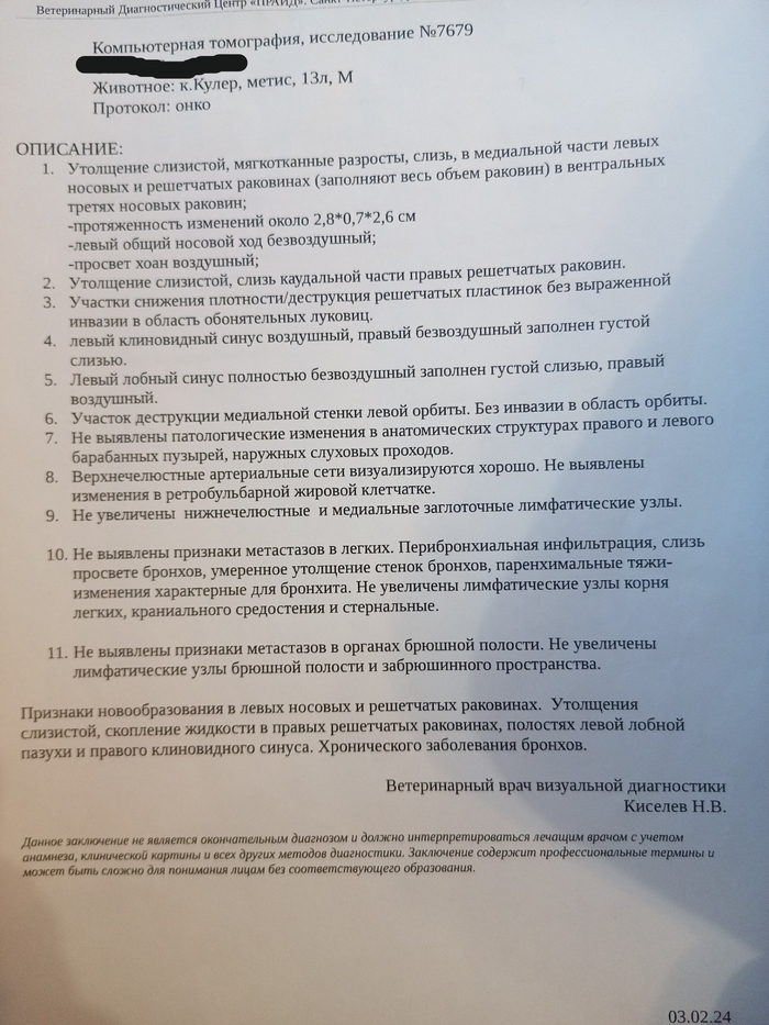Продолжение серии постов про кота с онко. 13 января 2024г я получила результаты цитологии и гистологии кота и охуела словила шок. Несколько раз ещё перечитывала, пыталась осмыслить: аденокарцинома слизистой носа... злокачественная... единственный эффективный способ лечения — лучевая терапия... прогноз неблагоприятный.