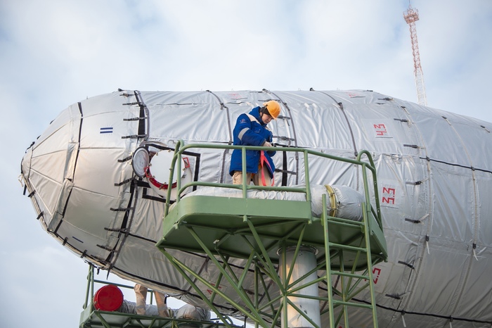 Это будет первый запуск корабля с экипажем с помощью ракеты-носителя "Союз-2.1а", полностью состоящей из российских комплектующих, вместо ранее эксплуатировавшейся ракеты "Союз-ФГ" с украинской системой управления.