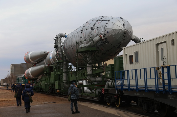 Ракета-носитель «Союз-2.1б» с новой партией спутников связи OneWeb вывезена из монтажно-испытательного корпуса и установлена на стартовом комплексе площадки № 31 космодрома Байконур.
