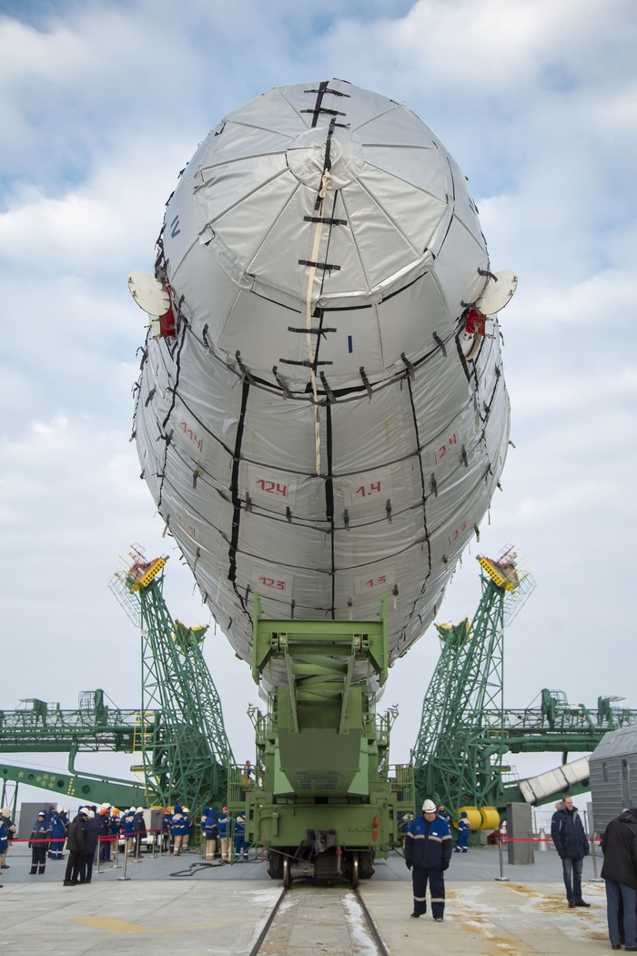Фотографии вывоза ракеты-носителя "Союз-2.1б" с разгонным блоком "Фрегат-М" и 34 спутниками OneWeb