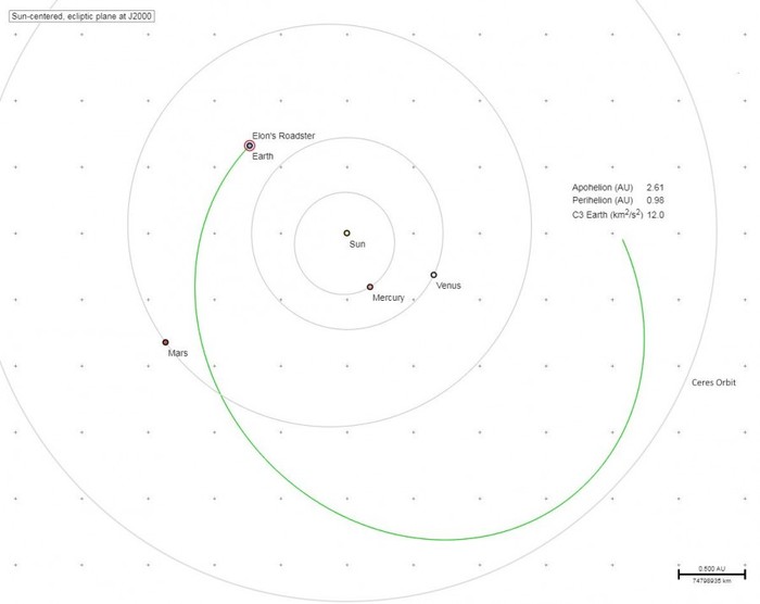 Tesla Roadster улетел в астероидный пояс