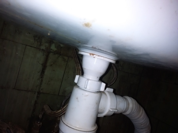 Ещё один пример ремонта от горе-соседа. Тем кто не в курсе что тут не так: уплотнитель голубого цвета на первой фото поставлена не туда. Она должна быть с нижней стороны. Если поставить сверху, как на фото, то вода не вся уходит из раковины.