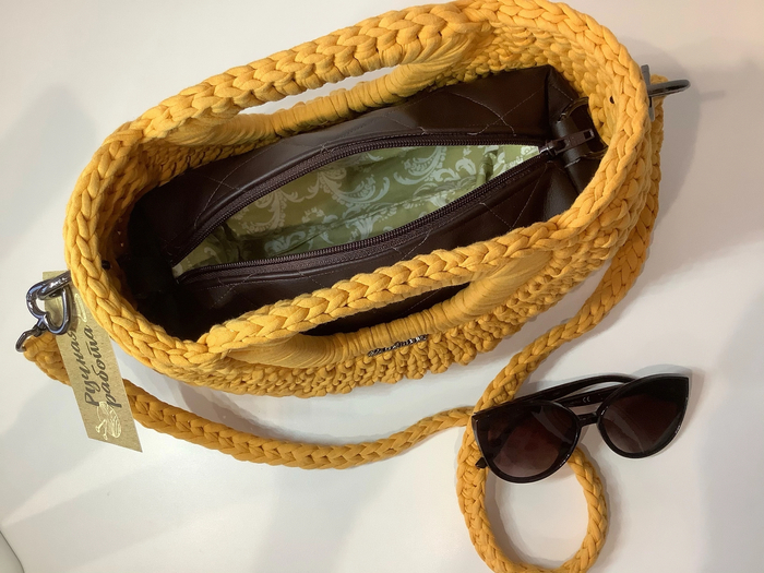 Чтобы не выбиваться из композиции, на дно сумки я пришила граненные подвески из акрила. Так что при носке, они не сколятся и не треснут, в отличие от стекла