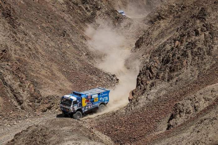 Много странностей было на этом Дакаре. К сожалению, организаторы то и дело пытались вставить палки в колеса нашим ребятам из КАМАЗ-мастер. То добавят какое-то время Сотникову, из-за чего была изменена стартовка и рушилась выбранная накануне руководителем команды Владимиром Чагиным тактика. (Позже, это время заберут обратно.) То дисквалифицируют экипаж Андрея Каргинова из-за происшествия со зрителем, ответственность за которых лежит в первую очередь на организаторах.