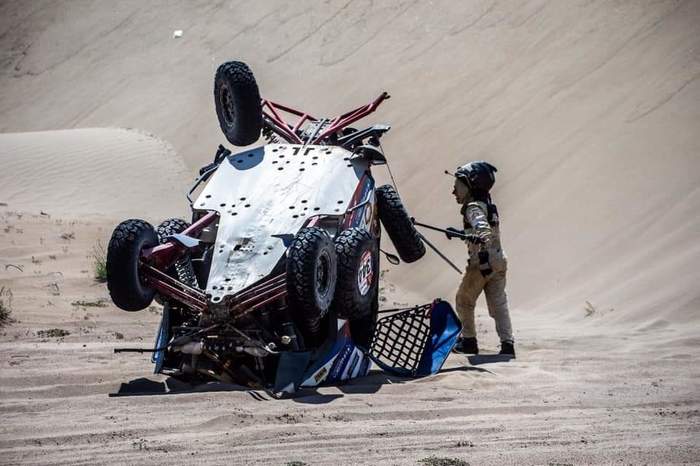 Много наших соотечественников отважно боролись за главную награду соревнований - золотого бедуина. Экипаж Сергея Карякина отлично шел на всем протяжении гонки, но к сожалению, на одном из последних этапов попал в жуткую с виду аварию. Казалось, все, для экипажа гонка окончена, но нет, ребята вылезли из своего багги, и сразу приступили к сложному ремонту в полевых условиях. С большими потерями времени ребята закончили гонку с 10 результатом.