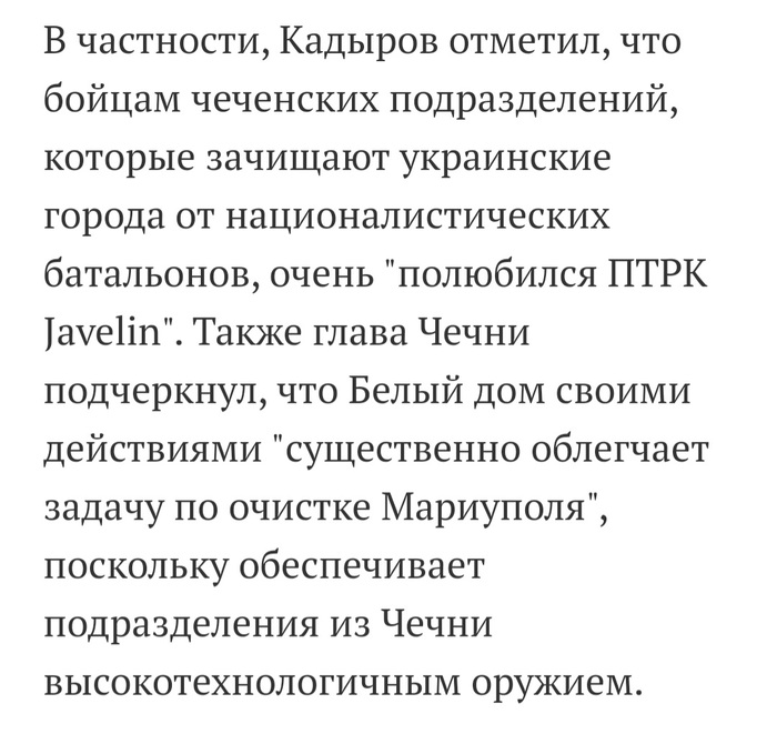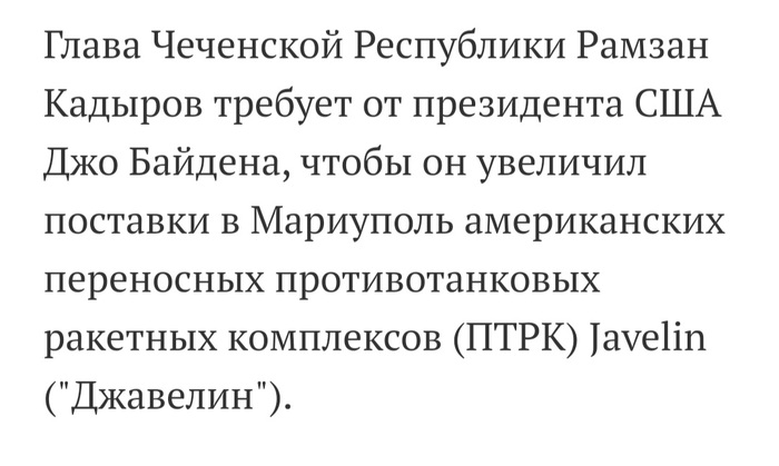 Ранее Кадыров предложил США снять санкции со своих родственников в обмен на украинских пленных, список которых он передал бывшему американскому разведчику Скотту Риттеру, прибывшему в Грозный накануне.