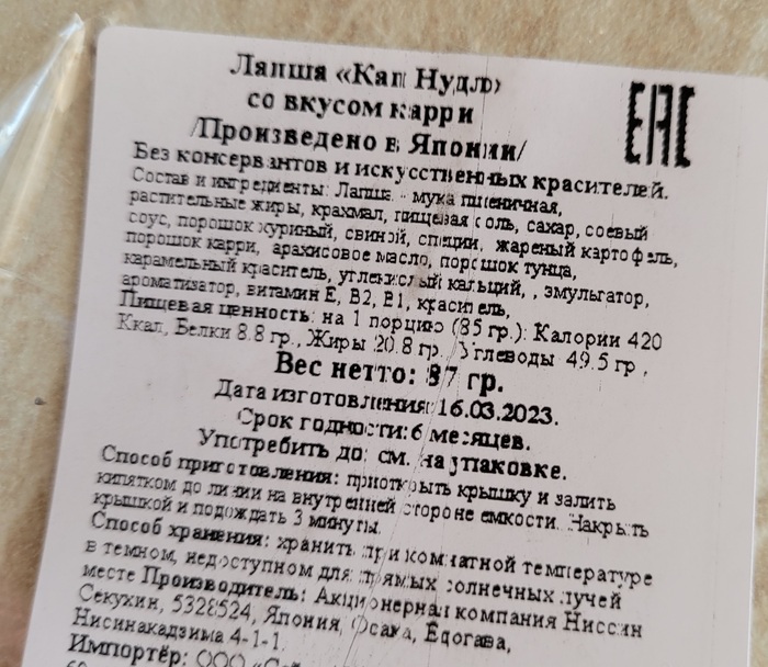 Добавлю по стоимости. В регионах, близких к Японии (Приморье, Хабаровск, Сахалин), Кап Нудл стоит в среднем 200-250 рублей за стакан.