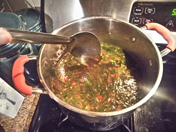 Затем я кипячу бульон около 25 минут, время от времени помешивая. Затем переходим к следующему заданию.