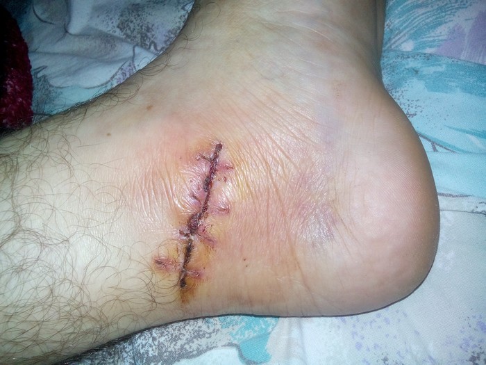 И вот из туалета вышел мужчина. Он был сильно пьян и с трудом понимал, чего от него хотят. И всё время хихикал. На голове мужчины была небольшая ранка. Никакого кровотечения. А вот из кисти кровь капала. Там была рана - на ладонной поверхности правой кисти со стороны основания большого пальца красовалась подковообразная резаная рана. Мужчина сжимал и разжимал кулак, как бы выдавливая кровь из раны.