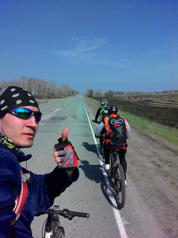#бревет200 Всем привет, вот я выспался и готов писать отчет. Слики прийти не успели, а жаль.. Старт в другом городе, добираться до туда было решено на машине, поспать перед дорогой не удалось. Сбор всех и упаковка велов, заняло по времени час. Дорога была чистой (в плане машин), ехали спокойно и не торопясь. Когда стали подъезжать к городу (Новосибирск) меня начало кумарить, остановились, умылся и поехали дальше. Прибыли за два часа до старта. Машину с прицелом было решено оставить на платной стоянке, так спокойнее. Оставили прицеп и поехали в кафе возле старта. Покушали, вышли, и увидели участников с других городов на серьезных шоссейниках( Фул карбон, даже оба флягодержателя), пообщались немного и поехали обратно на стоянку ставить машину и забирать велы. 15 минут до старта и мы на месте. Зарегестрировались, отдали стартовый взнос, получили личные карточки и на построение. Общее фото, далее раздельный старт (сначала шоссеры, затем мтб, чтобы при обгонах обидно не было). Поехали)) сначала частые обгоны, затем обгоны после отдыха в насесте( сидя за другим участником). После 15 км нашел участников, с которыми можно хорошо держать темп. Девушка на найнере Куб и мужчина на 26. 70 км с ними были самыми лучшими в этом бревете, меня учили ездить в группе, давалась мне не легко. Так как при выходе из насеста сильно ускорялся, а потом трудно было держать темп. И так приблизительно после 70 км от старта начался боковой ветер, меня сдуло с насеста и догнать их я уже не смог. Остановился, съел пару батончиков, увидел друга и поехал с ним до разворота не спеша. 40 км до разворота были самими долгими. На развороте ждали приятные девушки, которые вкусно и кормили, и поили горячим чаем. Съел банан вприкуску с банановой булкой и запивая банановым соком, кружку горячего чая и мясной пирог. Обратно же очень легко стало ехать, гнали аж 30ку. Потом Николай сказал что хочет выйти из 10 часов, я не собирался на обратном пути так валить. Николай устремился вперед и вот его спину уже не видать. Остановился попил и съел еще один батончик. Догнали ребята из Нск Райдер ( велоклуб) и поехали мы с ними до кафе, они решили там остаться, а я поехал дальше. За 20 км до финиша я не свернул на развязке и поехал через весь город, забыл про нее. Пришлось ехать через весь город, сначала сопровождал парень, потом спрашивал у местных как добраться до финиша и вот спустя час я на месте. Всю дорогу было солнечно, но на обратном пути когда я ехал по городу начался дождь, останавливаться не хотелось ( чтобы достать дождевик), доехал так.
