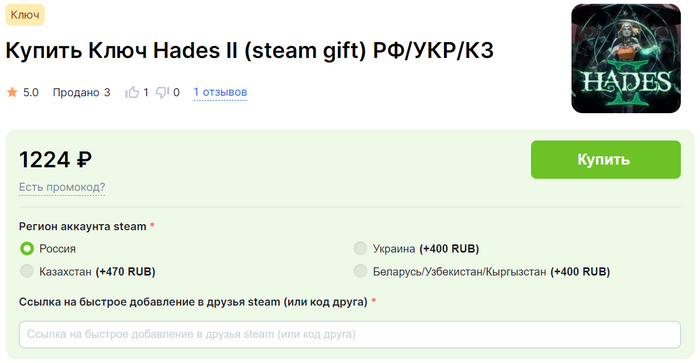 Для того, чтобы купить Hades 2 самому, придется пополнить кошелек в Steam. Мы уже писали статью о рабочих способах, также с этим могут помочь продавцы торговой площадки GGSel.