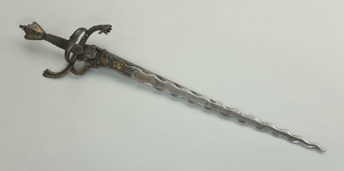 Пламенеющий клинок не исчез с двуручником, но развивался вместе с мечами, шпагами и рапирами.
