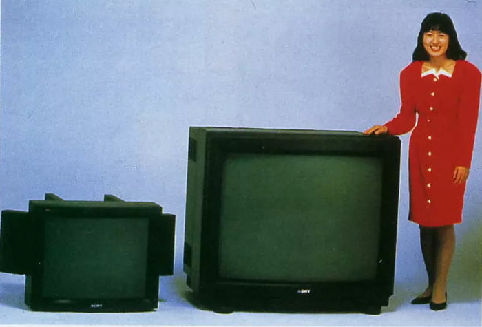 Увы, технология кинескопа оказалось тупиковой. Первой «за грань» шагнула фирма SONY, выпустив в1989 году телевизор Trinitron-45ED1 с диагональю 110 см.