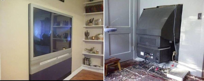 Впрочем толщина корпуса телевизора, в бытовых условиях, была вполне приемлема и нисколько не мешала. Конечно находились новаторы делавшие "плоскими" телевизоры строительным способом: