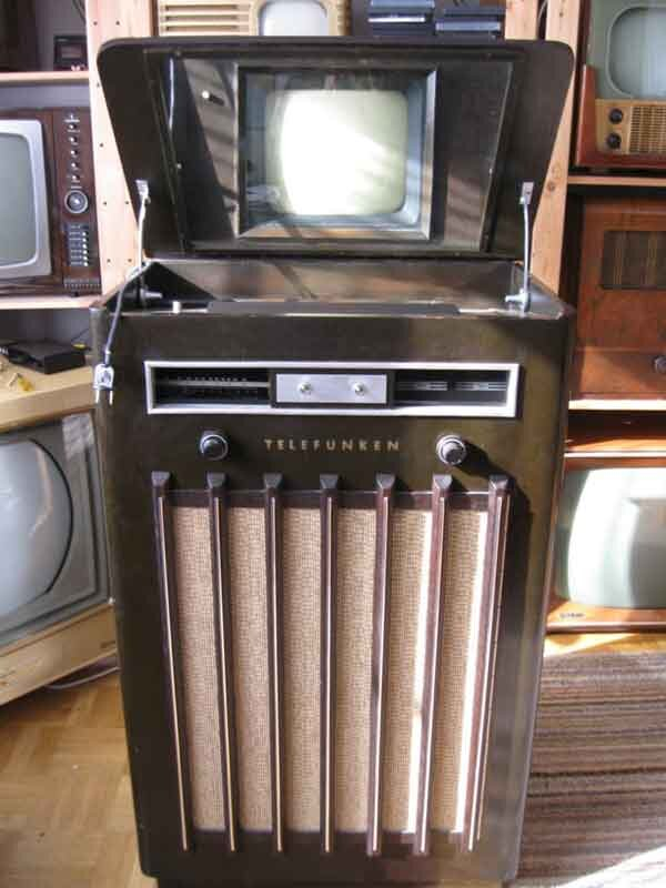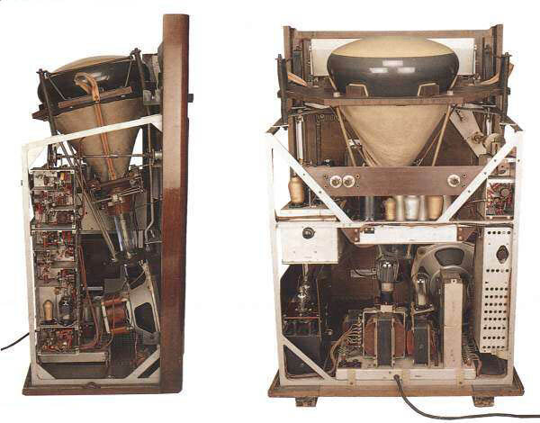 Первые телепередачи электронного телевидения начались в середине 30х годов. Кинескопы тогда имели маленький экран, но зато очень длинный хвост: еще не научились отклонять луч электронов на большой угол. Поэтому кинескоп в телевизоре размещали вертикально, а изображение зритель видел благодаря зеркалу над кинескопом.