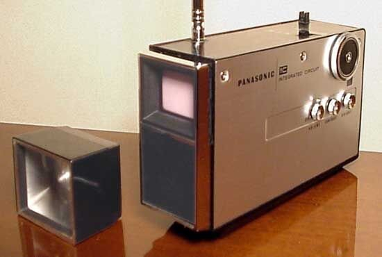 В 1970 году японская фирма Panasonic создала миниатюрный телевизор использовав концепцию первого массового телевизора СССР, КВН-49. Помните, там использовалась линза перед экраном.