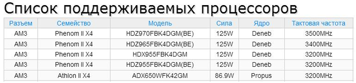 Что можно собрать на ее основе? У нас уже имеется видеокарта для нее. Добавим прилагающийся процессор. Стоп… Давайте еще раз обратим внимание на характеристики из списка поддерживаемых процессоров.