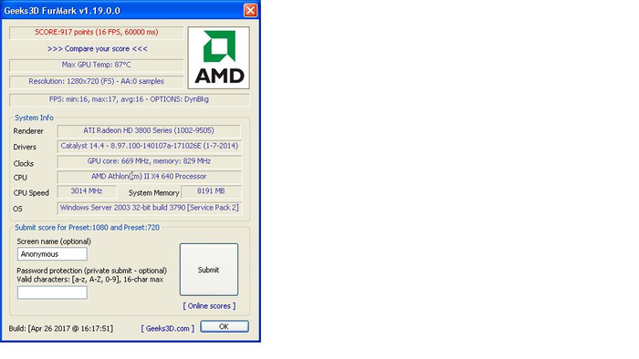 Тест производительности Попробуем для начала FurMark. Вот результат теста: