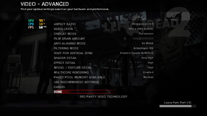 Left4Dead 2 Даже на максимальных настройках FPS доходит до 60, и играть вполне комфортно!