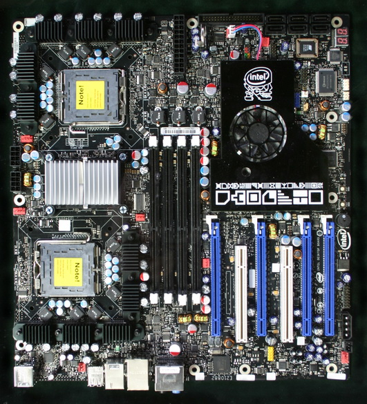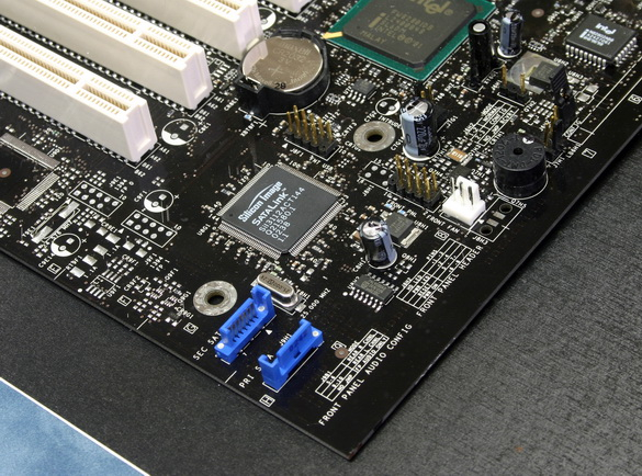 Вместо слота CNR в данном случае мы наблюдаем пустое место. Наконец, с этой платой Intel впервые добавила порты SATA, за которые здесь отвечает отдельный контроллер Silicon Image. Хотя Intel ещё предстояло разделить линейки материнских плат на разные сегменты, как мы видим сегодня, Blue Mountain заложила семейство Extreme Edition. То есть компания желала конкурировать и в high-end сегменте для геймеров, а не только на корпоративном рынке.