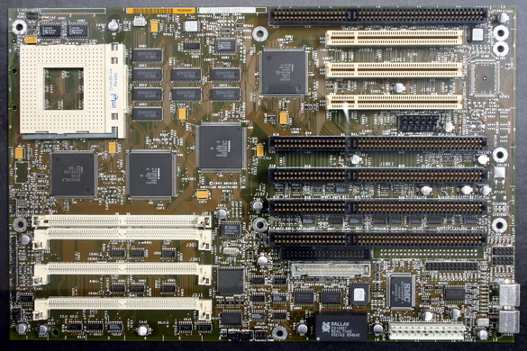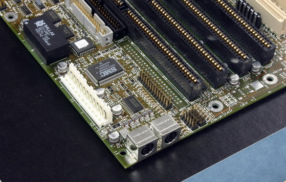 В 1993 году Билл Клинтон стал Президентом США, CERN стартовала проект World Wide Web, а вот на материнские платы не интегрировалось практически ничего. Совершенно верно – единственные интерфейсы ввода/вывода на материнской плате Batman – это пара портов PS/2. Если вам хотелось добавить звук, то можно было использовать один из слотов шины ISA для установки, например, Sound Blaster Pro. Монструозный генератор импульсов времени Dallas DS1887 мог переключаться между тактами шин Motorola и Intel. (Шина Motorola? Да, и такое было в истории).