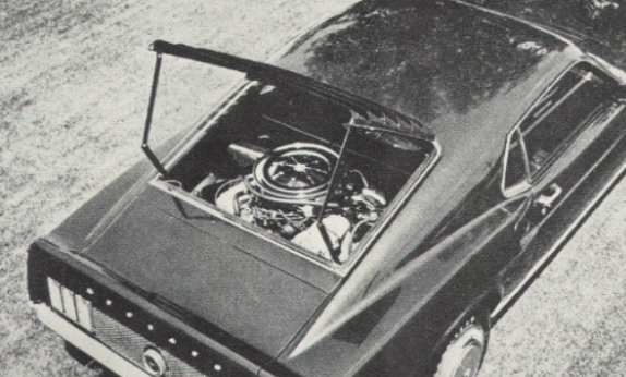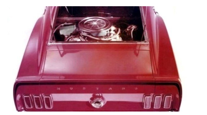 Одной из признанных проблем серийного Ford Mustang Boss 429 была его плохая развесовка. Это было результатом того, что между передними колесами (в шасси с достаточно короткой колесной базой) был втиснут большой, тяжелый двигатель V8. Поэтому внутри компании проводились различные эксперименты по решению этой проблемы, вот дин из них.