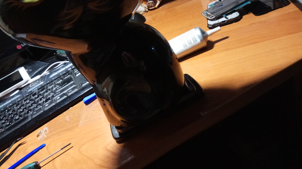 Оттираем экранчик до ссостояния "муха не иплась", сдуваем пылинки, проклеиваем скотчем 2 мм ТриЭм по периметру (дабы клей УФ не потек куда не надо) прикладываем новое стеклышко, и в печь его!