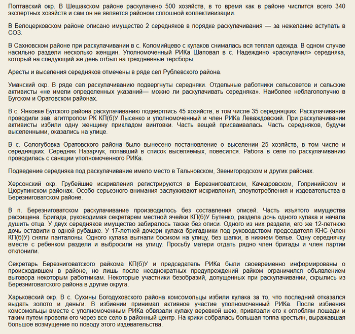 Замечу, что в статье, выдержки из которой я привел, говорится о действиях кулаков, в одной конкретной области. Если кто то думает, что в других областях кулаки вели себя иначе, то не тут то было, о чем кстати говорят многочисленные документы, часть которых я привел в предыдущих своих статьях.