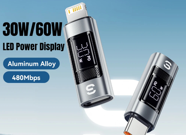OTG-адаптер Essager предназначен для подключения устройств с разъёмом Lightning к кабелям и источникам питания Type-C. Поддержка быстрой зарядки мощностью до 60 Вт позволяет использовать адаптер с современными зарядными устройствами. Встроенный цифровой дисплей отображает параметры питания в реальном времени, повышая наглядность процесса зарядки.