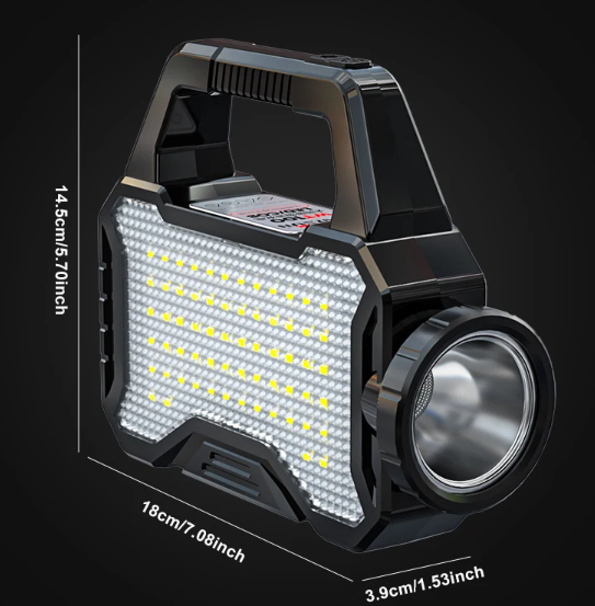 Прожектор применяется для кемпинга, аварийного освещения и ремонтных работ. Решение ориентировано на пользователей, которым требуется надёжный источник света вне стационарных условий и доступа к электросети.