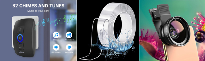 Беспроводной звонок KERUI M525. Удобная и полезная вещь для квартиры или дачи. На странице товара несколько вариантов исполнения - с двумя звуковыми извещателями или двумя кнопками. 32 мелодии на выбор. Питание от батареек.