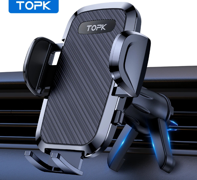 Автомобильный держатель TOPK предназначен для надёжной фиксации смартфона на вентиляционной решётке автомобиля. Гравитационный механизм автоматически зажимает устройство при установке, упрощая использование одной рукой. Конструкция подходит для смартфонов разных размеров и сохраняет устойчивость во время движения.