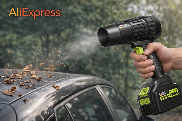Портативный фен с литиевой батареей предназначен не только для сушки волос, но и для выдувания воды, пыли и мелкого мусора. Турбовентилятор создаёт сильный направленный поток воздуха, что делает устройство полезным в быту и технических задачах. Компактный корпус удобен для хранения и переноски.