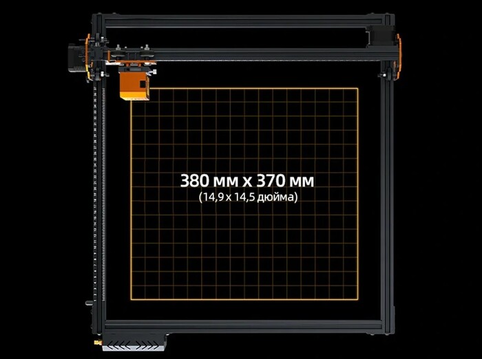 За эти деньги вы получаете настольный станок-гравер с приличной рабочей областью 380mm х 370mm. Комплект включает сам лазерный гравер, управляющий блок (WiFi) и все необходимое для старта.