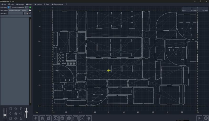 Самое главное — гравер заработал сразу после сборки, без шаманства, так сказать «из коробки». Для работы с лазером предусмотрены программы оригинальный AcmerTool, LightBurn (платное ПО) и LaserGRBL (бесплатное ПО). Базовые функции (запуск, пауза, остановка, настройка параметров реза/выжигания) есть и там, и там. Установке фокуса следует уделить больше внимания, так как большинство проблем с некачественной гравировкой или не прорезанием связано именно с ошибками установки нужной высоты для фокусного расстояния конкретной лазерной головки.