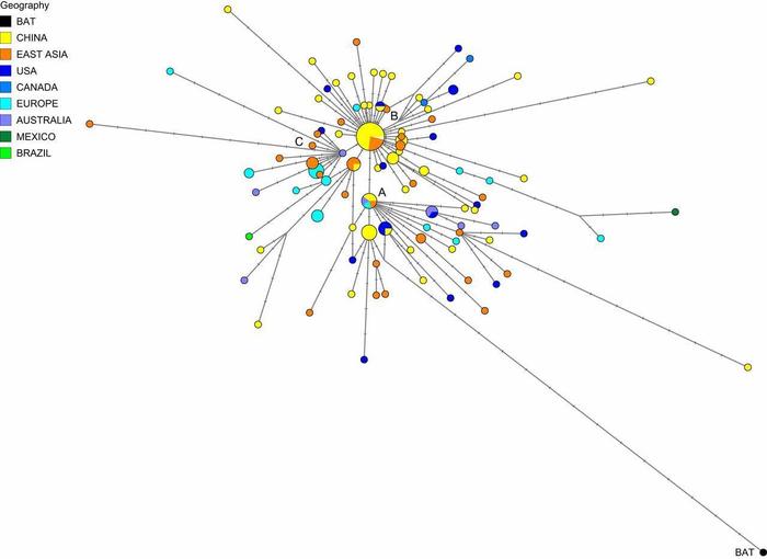 Анализ штаммов показал, что тип А – исходный вирус, который передался людям от летучих мышей через ящериц – не был самым распространенным в Китае. Эта вариация обычно встречается в США и Австралии. Тип А, по-видимому, мутировал в тип В. Согласно исследованию генотипов вируса, эпидемию в Китае вызвал тип В. Этот вариант характерен в основном для Азии, он не продвинулся далеко за пределы региона без дальнейших мутаций. Тип C, "дочерний штамм" типа B, уже возник за пределами Китая и встречается в основном у жителей Европы.