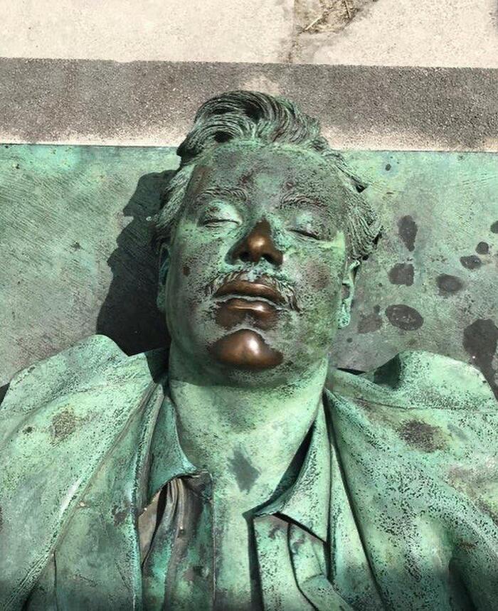 Вот вам доказательство европейской распущенности! На фото памятник В. Нуару (кто это не важно) в Париже. И что ему трут на счастье?!