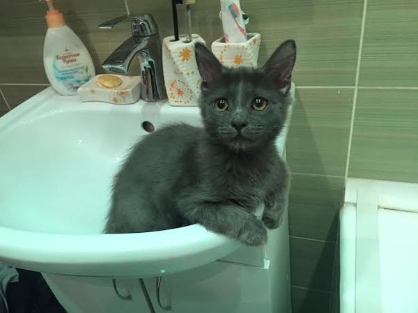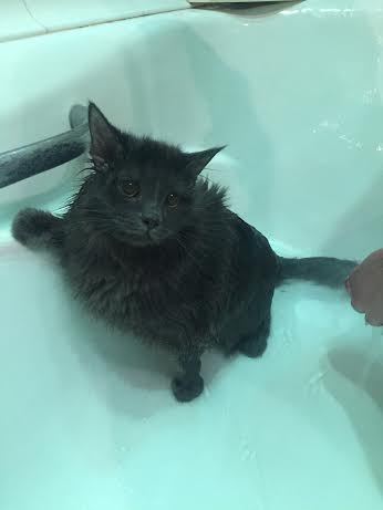 А еще он обожает КУПАТЬСЯ! Да, да. Стоит хозяевам не прикрыть дверь в ванную, как он бесцеремонно плюхается туда. В детстве, когда он был поменьше габаритами, он не упускал возможности окунуться в .. хм хм.. унитаз, который случайно забыл кто-то закрыть.