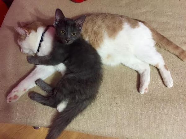 Меня бережно посадили в куртку и понесли на улицу. То ли от стресса, то ли от усталости, я быстро уснул и проснулся тогда, когда вокруг меня стояло много людей. Они все тянули ко мне руки, поднимали меня и терли об лицо. Сначала все так и шло хорошо: меня любили и постоянно тискали. В квартире, где я жил, было две комнаты. В одной жило 4 человека, в другой два (среди них моя хозяйка). Я быстро всех полюбил! Спал о всеми по очереди в ногах, но вот до хозяйки допрыгнуть не мог: она спала на высокой кровати, к которой была приставлена лестница. Но и ее я со временем покорил.