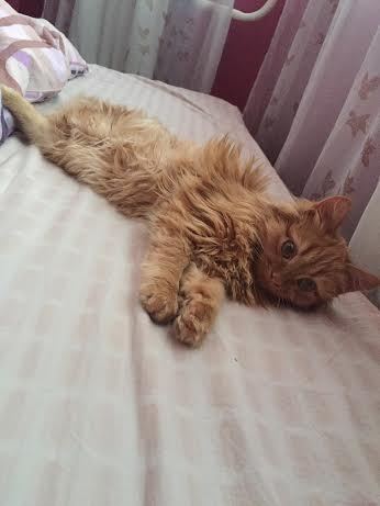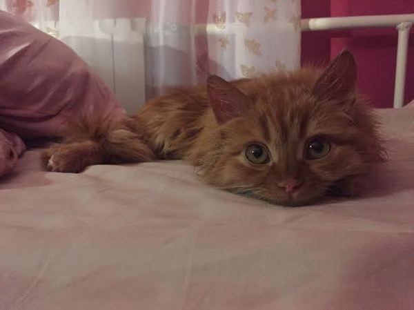 Рыжий (да, споры насчет имени продолжатся). До безобразия милый. Однажды он перевернул вазу с цветком. Хозяйка устроила ему выговор, после чего он забился под кровать (нет, на него даже голос не повышали), а вылез только через час и пошел урчать вокруг хозяйки. Прощения просил. Я вообще такого никогда не видел. Это странно, но чертовски мило.