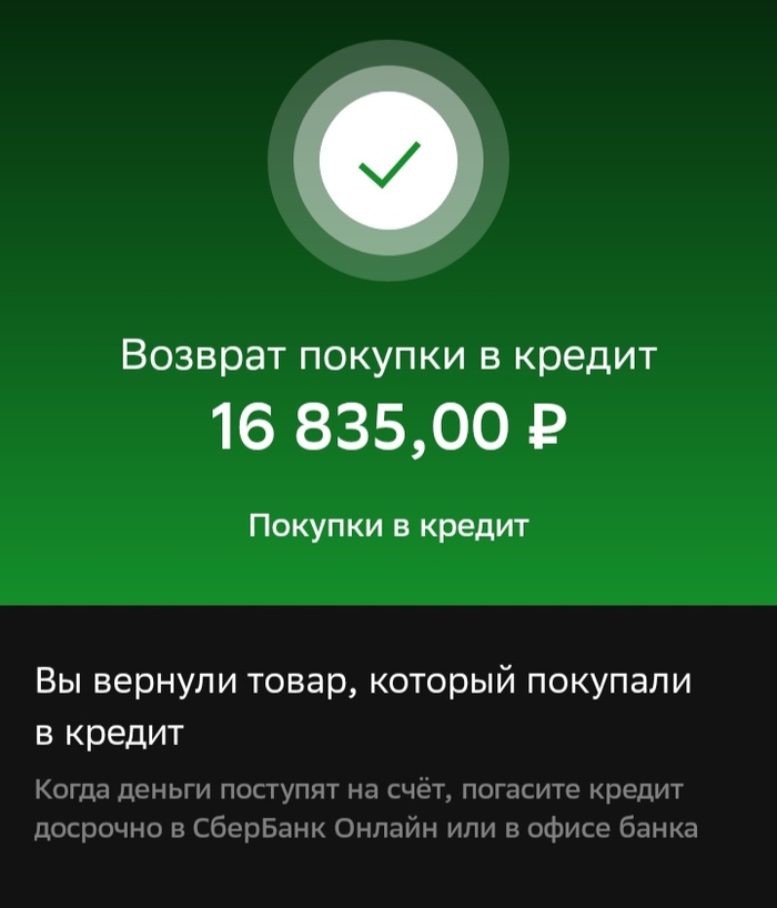 Окей, а что тогда с моим кредитом? Стучусь в ТП Сбермаркета - говорят "денежные средства за отмененный заказ автоматически будут возвращены на карту в течение 1-2 рабочих дней на карту, с которой был произведен платеж, вам же необходимо будет произвести полное или частичное погашение рассрочки.", на КИ никак не повлияет. ОК, закажем ещё раз.