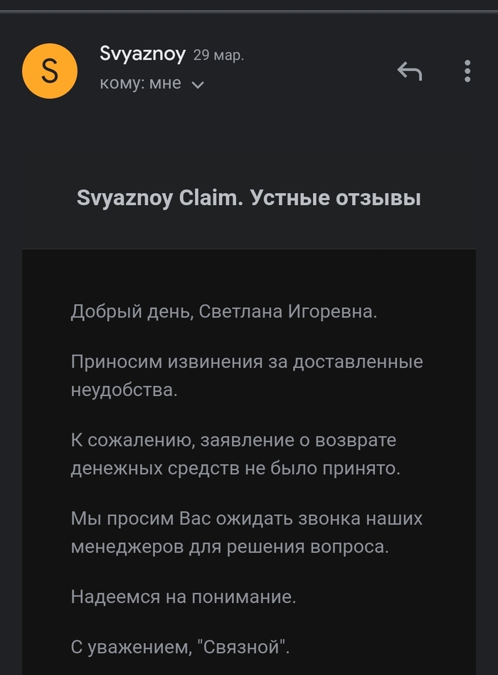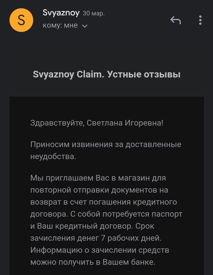 На всякий случай решил позвонить на горячую линию "Связного", чтобы убедиться, что заявка удалена и сотрудник ничего нам не оформил. Девушке, ответившей по горячей линии я благодарен. Во-первых, успокоила меня, а горело у меня знатно, т.к.к потеряли час времени просто так. Во-вторых, рассказала об условиях рассрочки, а именно, что при оформлении рассрочки на 24 месяца обязательным условием является покупка аксессуаров на 15 т.р. Почему сотрудник в офисе не мог этого сразу сказать? Вопрос остаётся открытым. В-третьих, увидела закрытую заявку и сообщила, что наш доблестный сотрудник кроме аксессуаров на 15 т.р., хотел оформить еще услуг на сумму 12 т.р. А чтобы жизнь малиной не казалась еще и 4 сим-карты. Думаю их он и пропикивал под столом. Девушке на линии оставил положительный отзыв, она - молодец!
