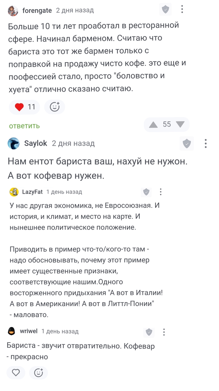 2. Те, кто считают, что профессия бариста это все таки ерунда, а не работа.