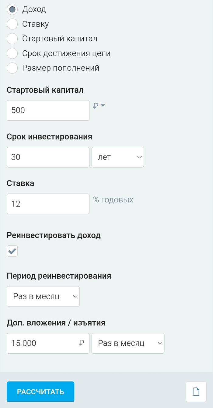 При тех же условиях за 20 лет получается уже 14,8 млн, а за 30 лет сумма вырастет до 52,4 млн!