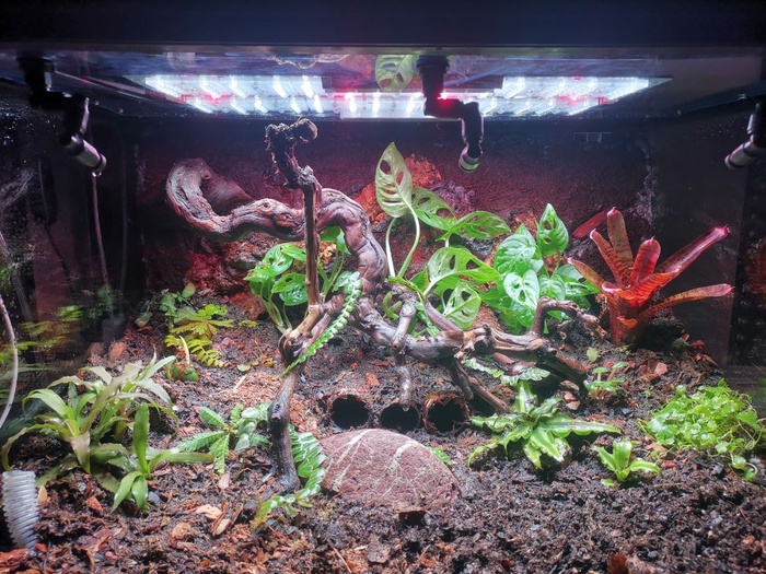 Для стабильности экосистемы, в грунт запущены колонии мокриц, хищные клещи, подуры и дождевые черви.